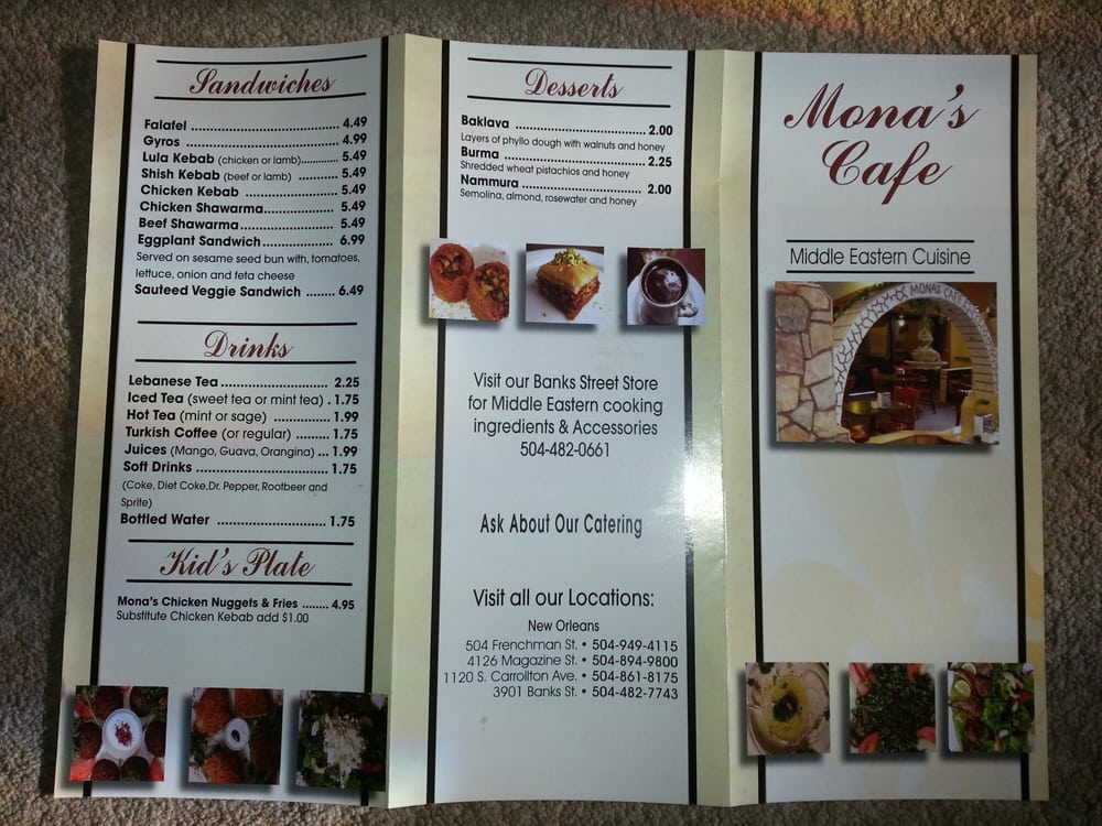Mona's Cafe Menu