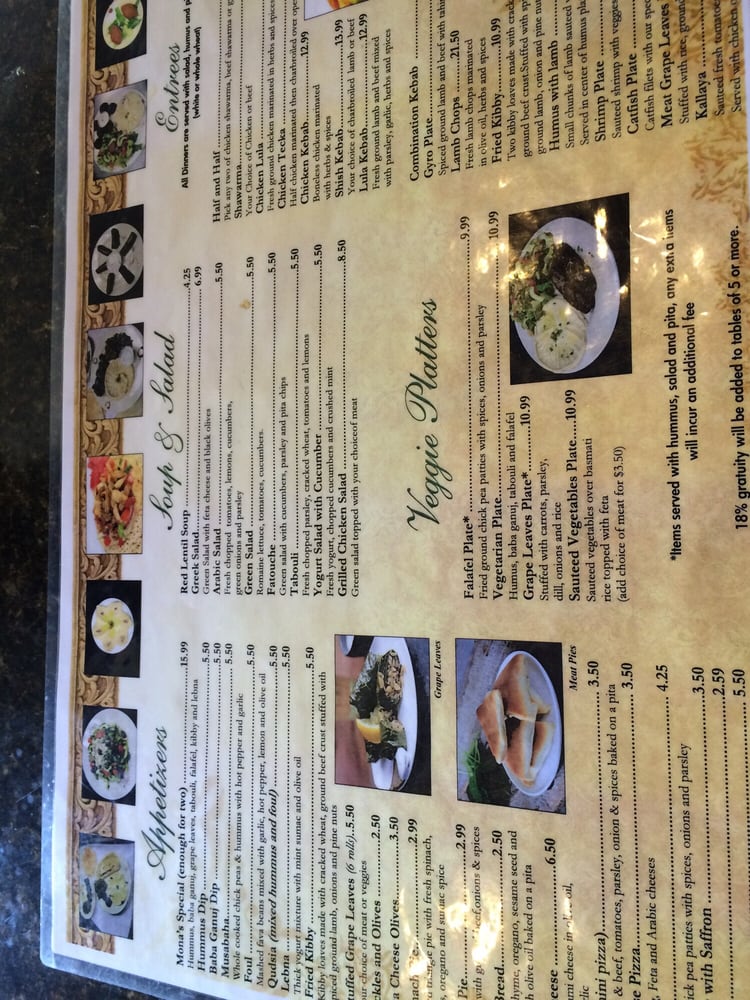 Mona's Cafe, a Middle Eastern restaurant located in New Orleans, offers a wide range of dishes suitable for all tastes and preferences. From the delicious Mona's Special appetizer platter to the flavorful Chicken Shawarma plate, each dish is made with fresh ingredients and served with exceptional quality. The menu also includes tasty vegan and vegetarian options, such as the creamy Hummus and the flavorful Spinach Pie. Customers rave about the friendly atmosphere, fast service, and mouth-watering food at Mona's Cafe. Whether you're looking for a quick lunch or a leisurely dinner, Mona's Cafe is the perfect spot to enjoy authentic Middle Eastern cuisine. Next time you visit, be sure to try the Baklava dessert for a sweet ending to your meal.